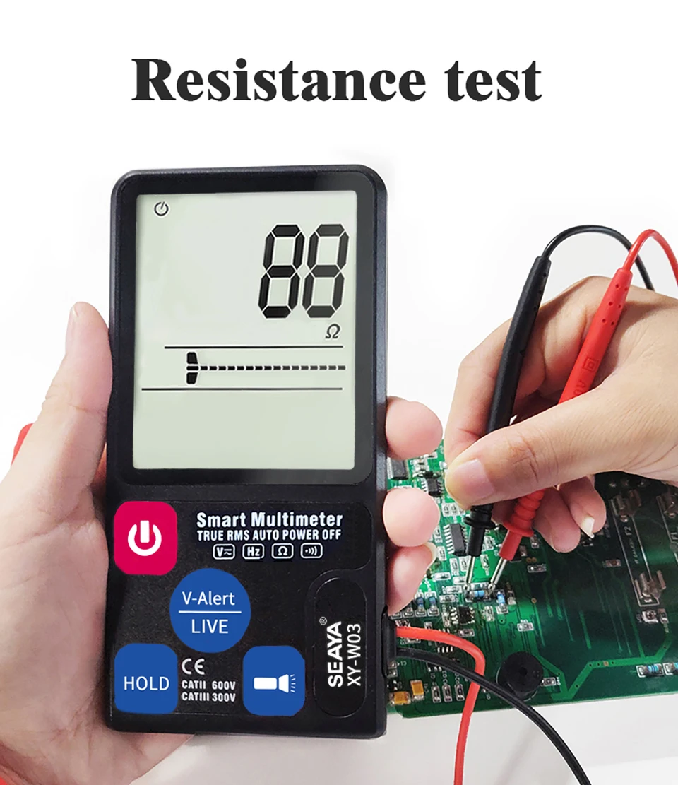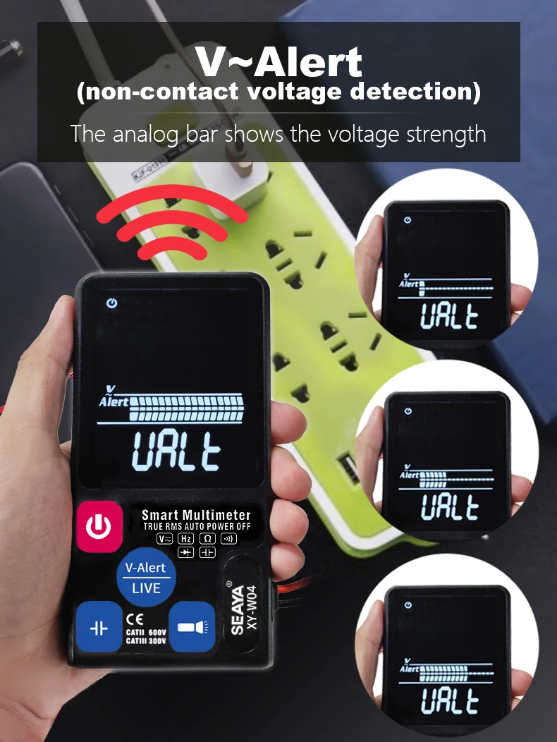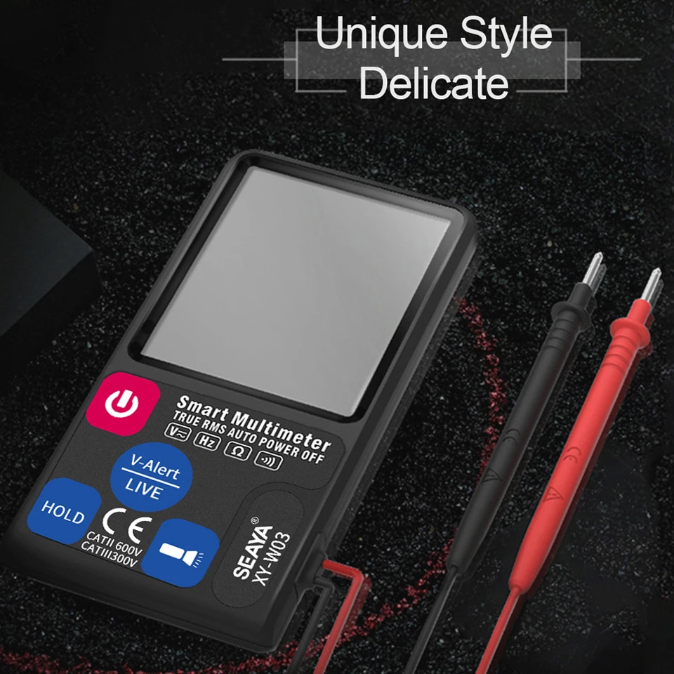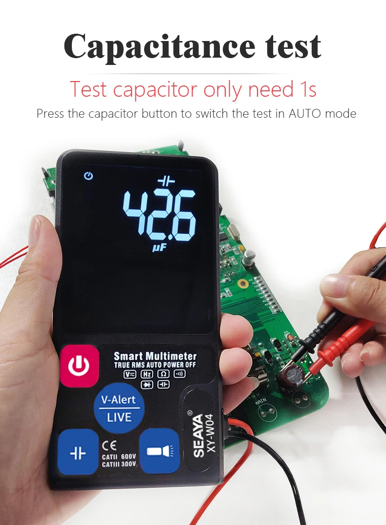 [Простой/удобный/простой в использовании]: Разработанный с помощью умной технологии Seaya, этот мультиметр может автоматически идентифицировать протестированные параметры и выбрать требуемый диапазон. Мультиметр с дизайном зондов позволяет тестировать безопасно и эффективно-нет необходимости подключать и выключать зонды, которые не только могут сэкономить время обучения и тестирования, но и предотвратить неправильное включение портов.