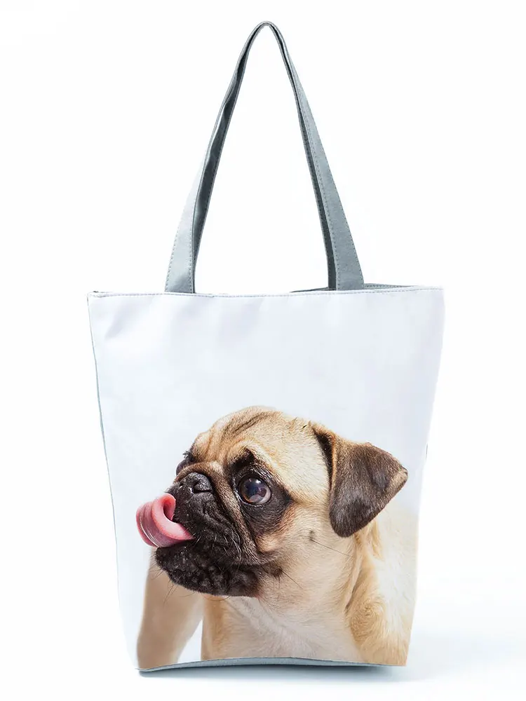 Повседневная вместительная Экологически чистая многоразовая сумка для покупок с принтом собаки, для мопса, складная дорожная женская сумка для хранения с индивидуальным рисунком