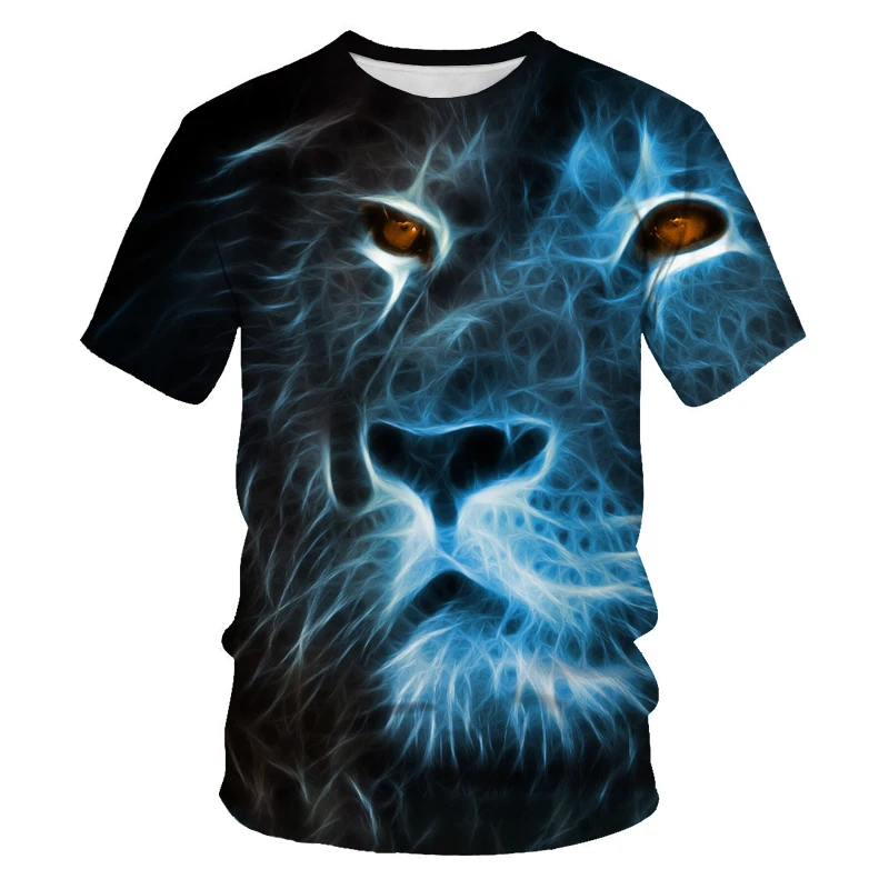 Модная Летняя мужская футболка с 3D принтом льва с коротким рукавом...