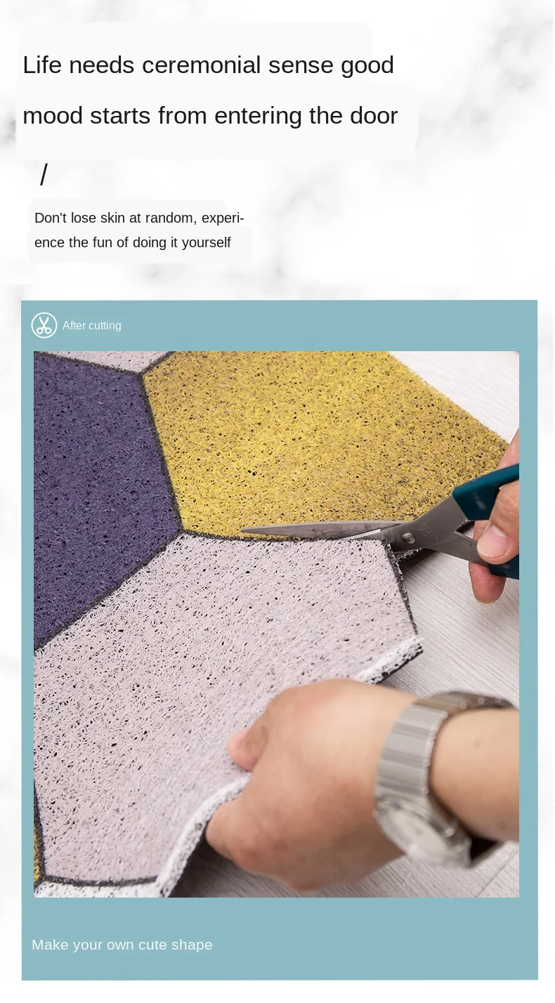 Дверной коврик из ПВХ с шелковой петлей можно разрезать самостоятельно, его нелегко сломать, и его удобно вырезать нужную вам форму.Вы можете испытать удовольствие от руки и получить уникальный продукт, который принадлежит вам.