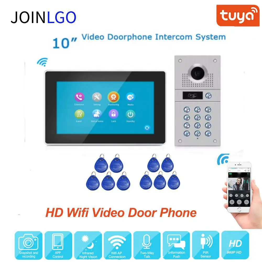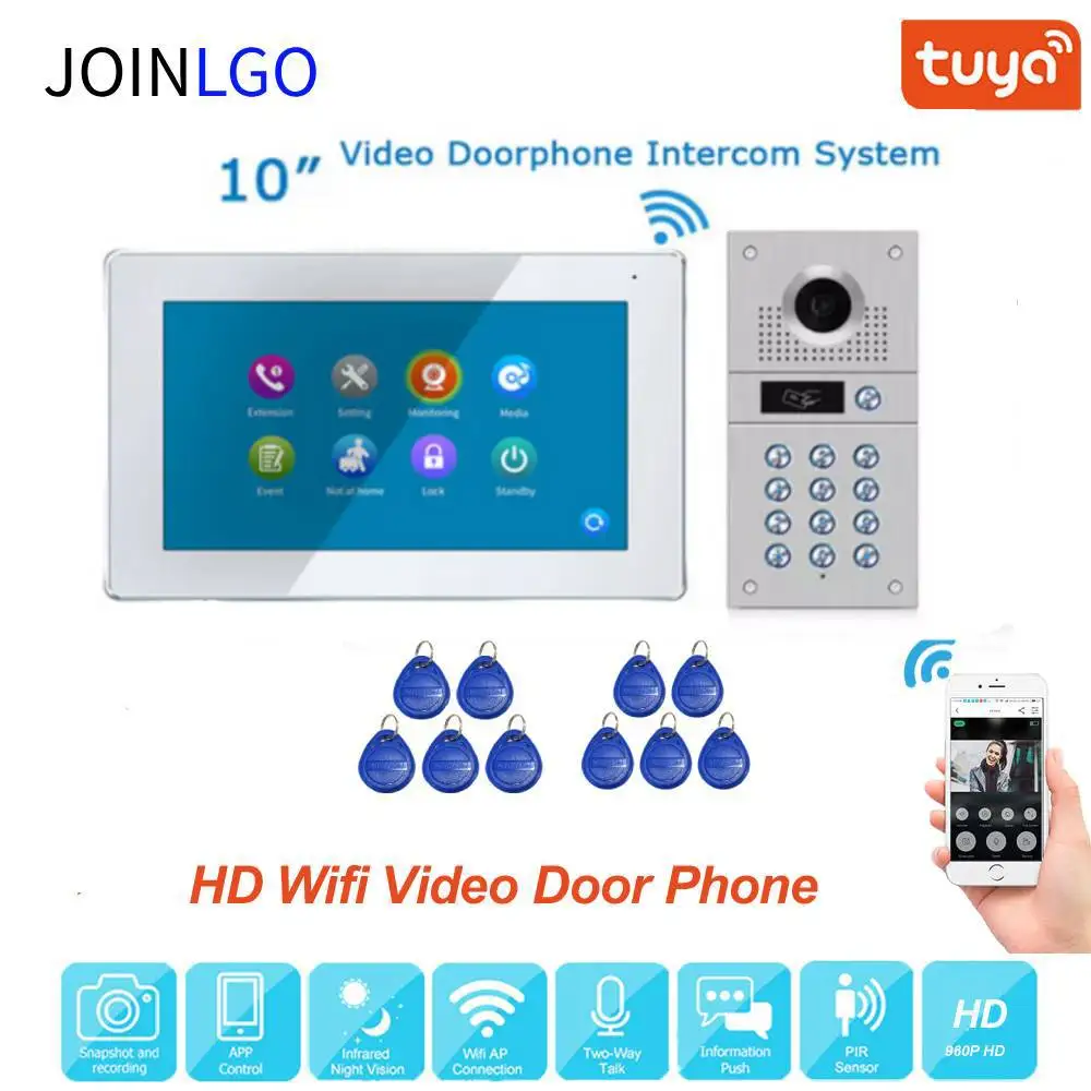 Видеодомофон с сенсорным экраном 10 дюймов, 960P, Wi-Fi, дверной звонок, домофон для дома, радиочастотный код, камера с дистанционной разблокировкой