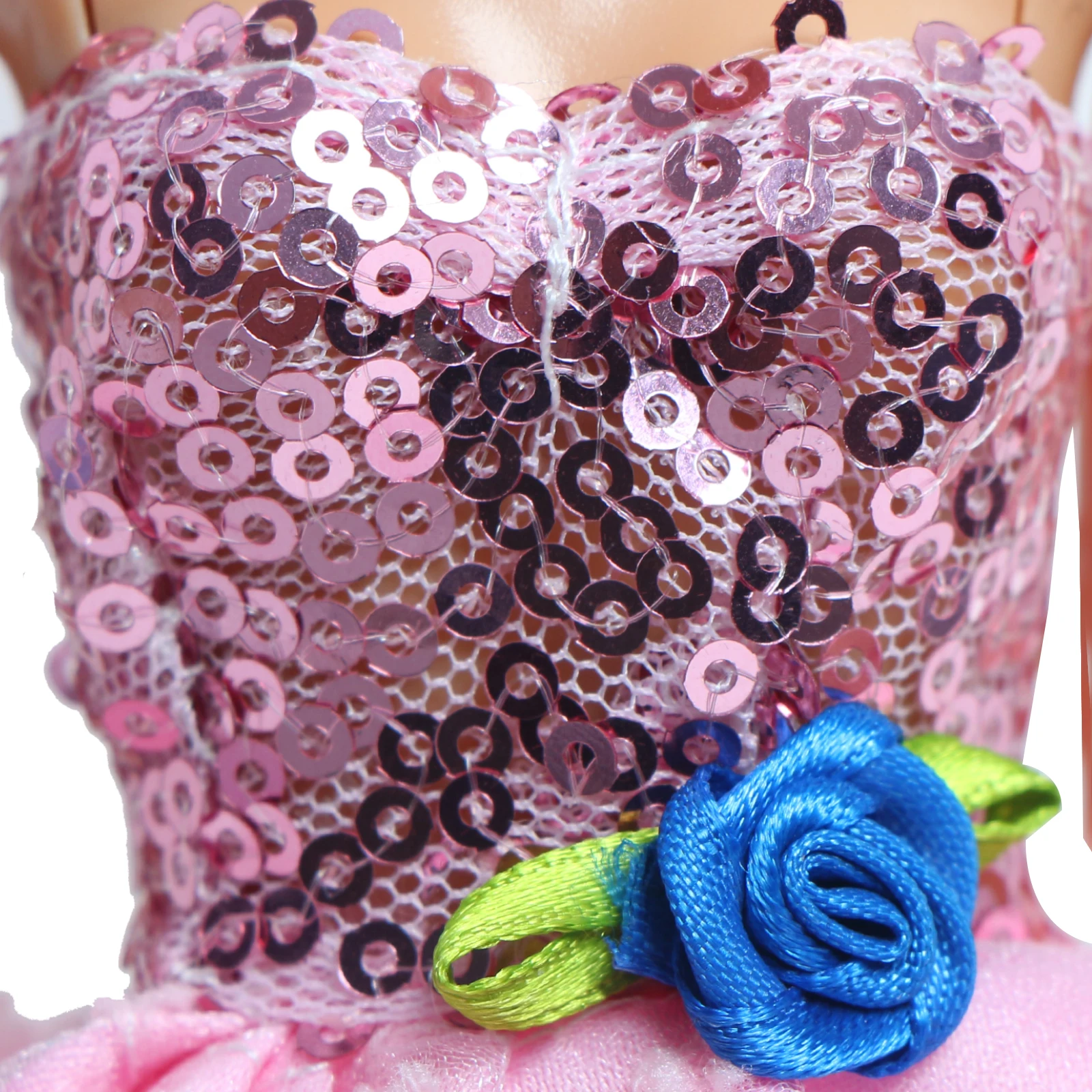 1 комплект, розовое кружевное платье без бретелек с синими цветами