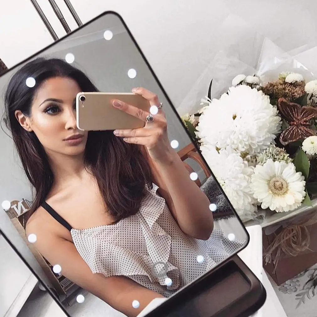 Умный заполняющий 20 светодиодный светильник, косметическое зеркало, вращающийся сенсорный экран, затемняющее беспроводное зеркало для макияжа с увеличительным зеркалом 10X