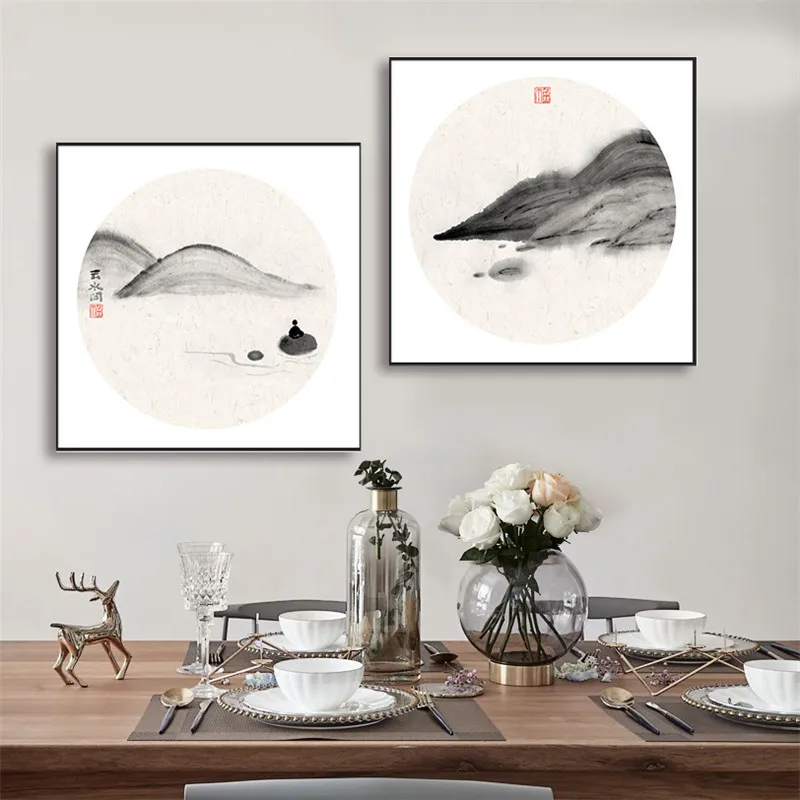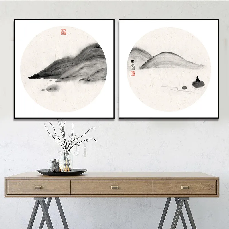 Абстрактный Традиционный китайский стиль дзен пейзаж настенная Картина на холсте постер картина для гостиной домашний офис Декор