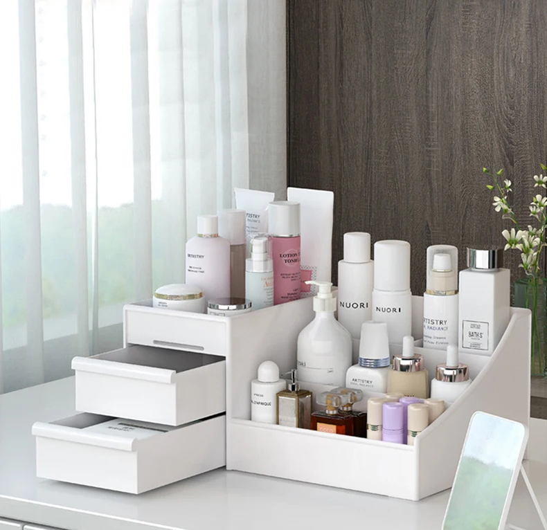 Коробка для хранения косметики, органайзер большой емкости, модный органайзер для лака для ногтей, мелочей, настольная полка для хранения ювелирных изделий, ящик для макияжа, контейнер
