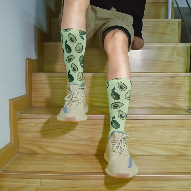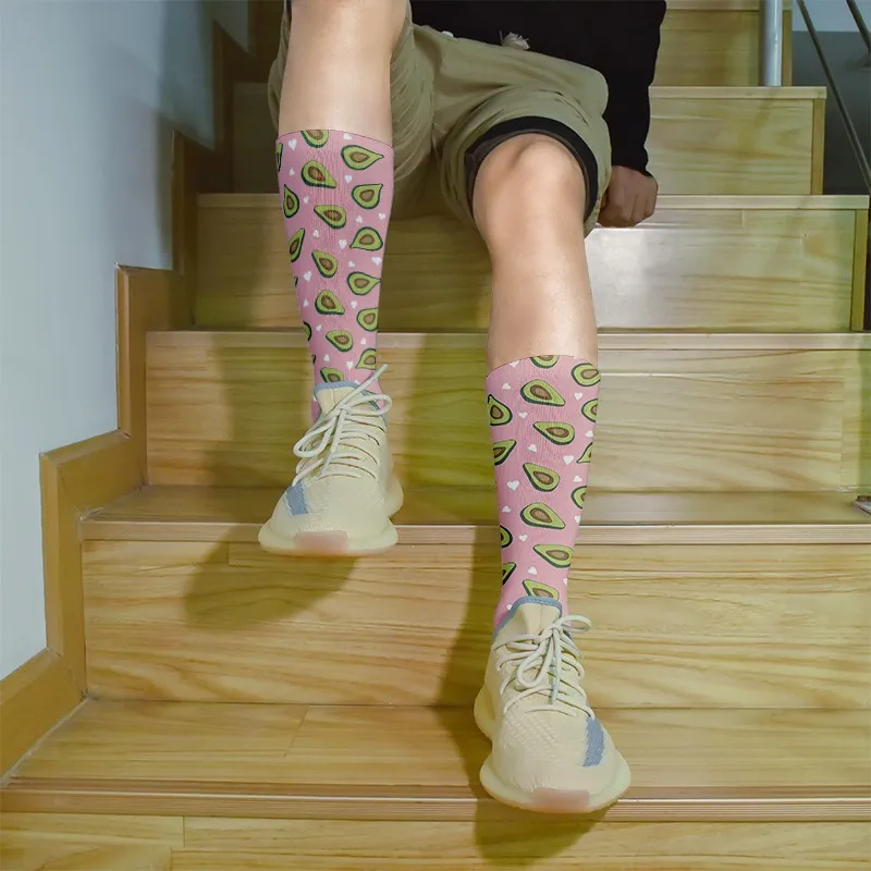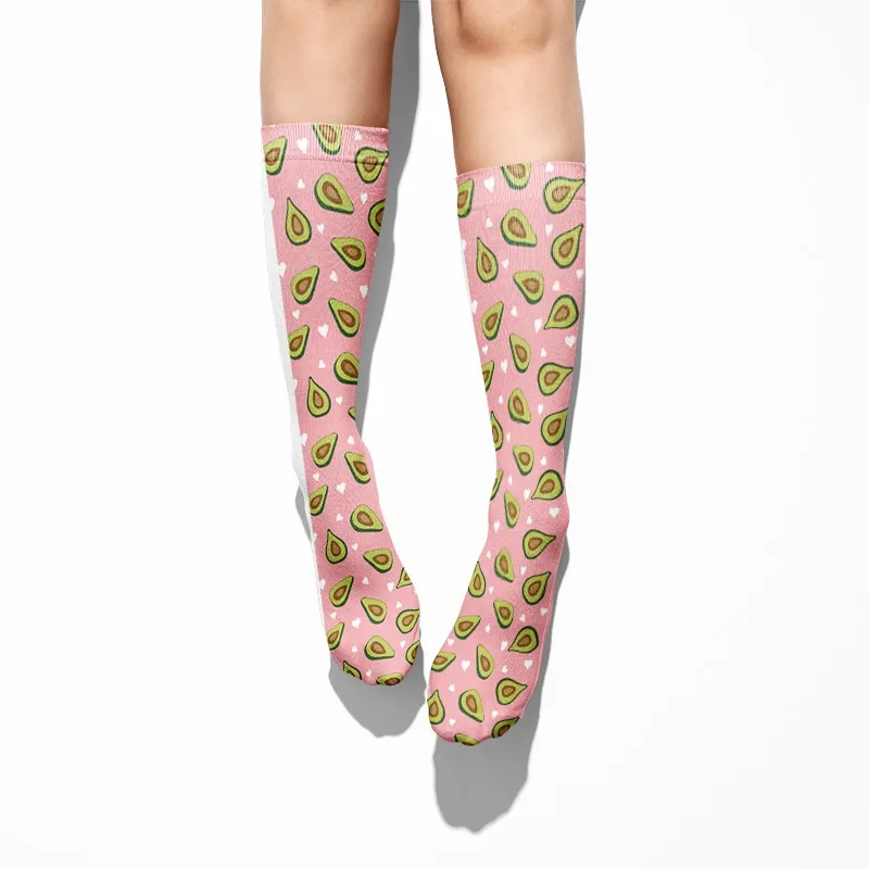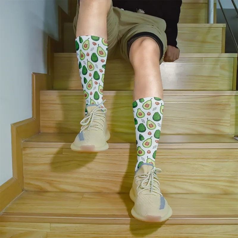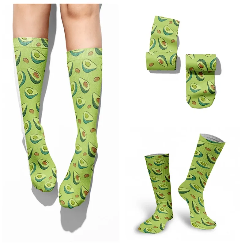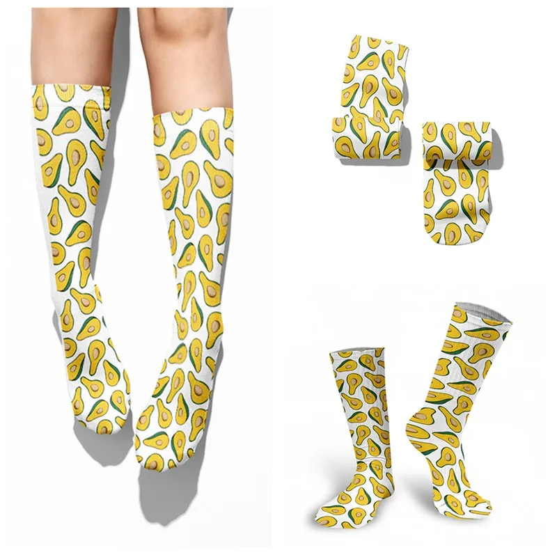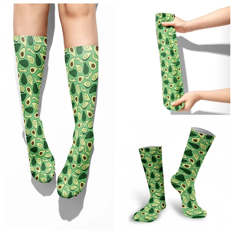 Носки женские хлопковые прямые в стиле Харадзюку, милые дышащие Смешные с мультяшным принтом фруктов, авокадо, Длинные для вечеринки, уличных танцев