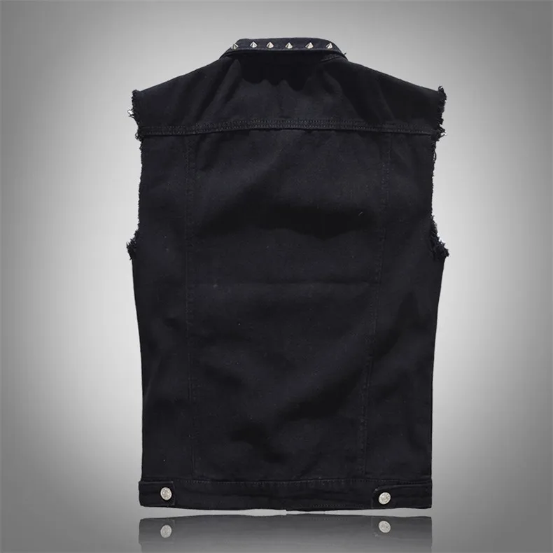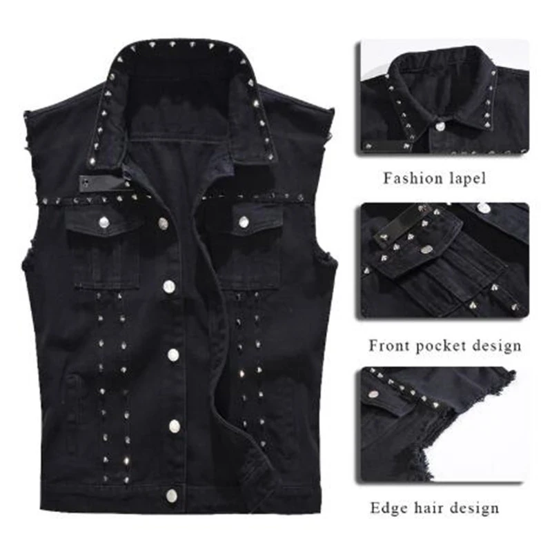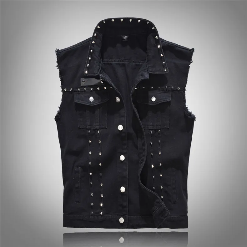 Весенний джинсовый мужской жилет в стиле панк-рок с заклепками, ковбойская джинсовая куртка, модный мужской мотоциклетный жилет, джинсовая куртка без рукавов в стиле хип-хоп