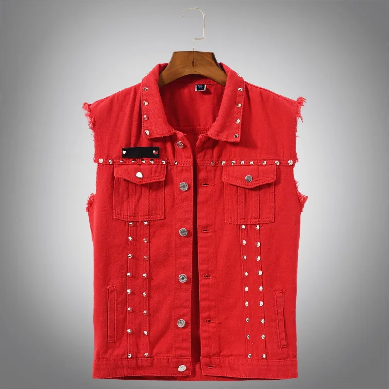 Джинсовый жилет для мужчин, ковбойская джинсовая куртка в стиле панк-рок, с заклепками, модный мотоциклетный жилет, джинсовая куртка без рукавов в стиле хип-хоп, весна