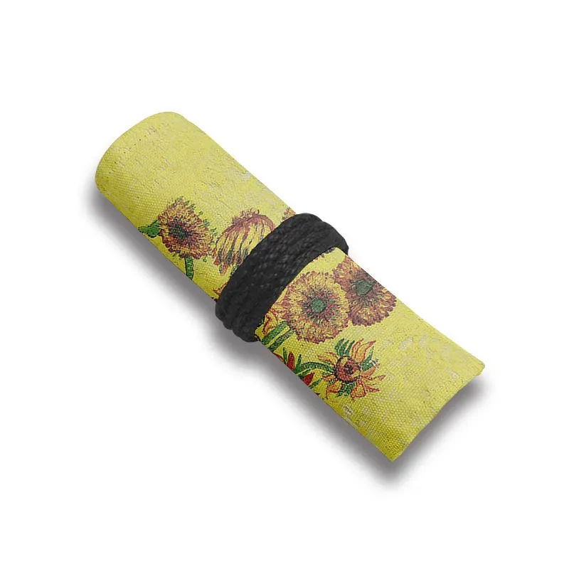 Холщовая Сумка для хранения с художественным принтом в стиле ретро, чехол для ручек и карандашей с подсолнухами Ван Гога, 1224364872 отверстий, школьные принадлежности для студентов