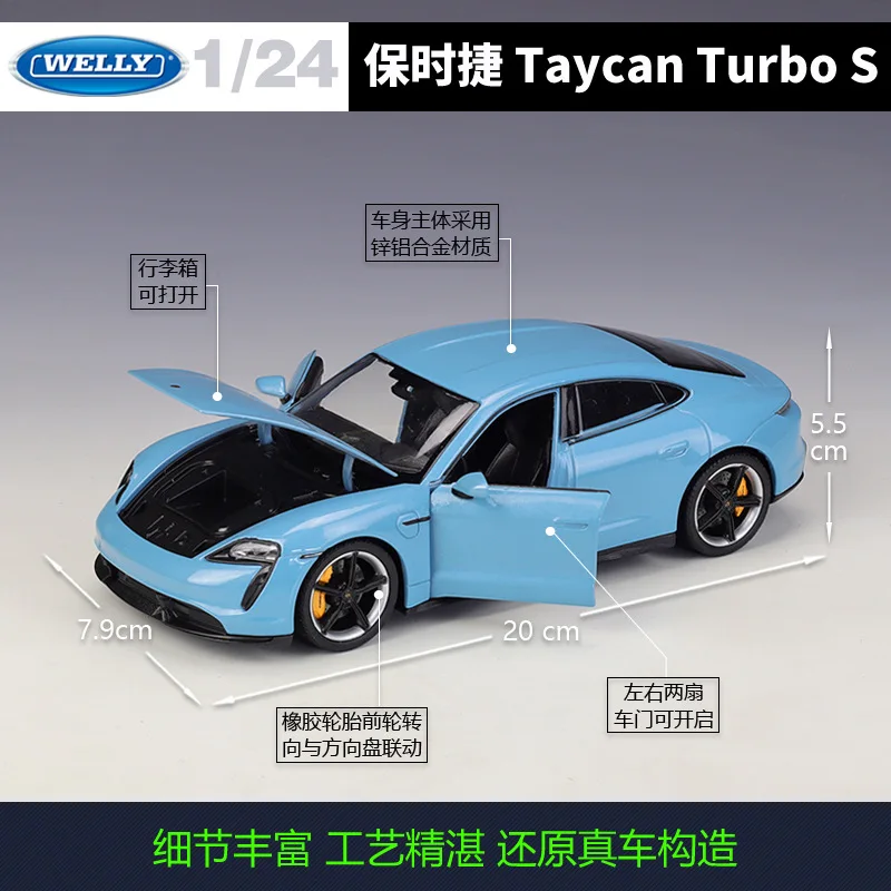 Модель автомобиля welly 1:24 Porsche Taycan Turbo S, модель автомобиля из сплава, коллекция украшений для автомобиля, Подарочная игрушка, литье под давлением