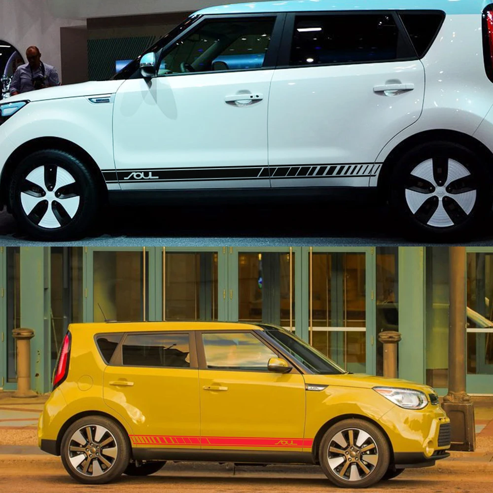 2 шт. наклейки на обе стороны двери автомобиля для Kia Soul DIY автомобильные аксессуары юбка в полоску графика Декоративная Виниловая Пленка Наклейки