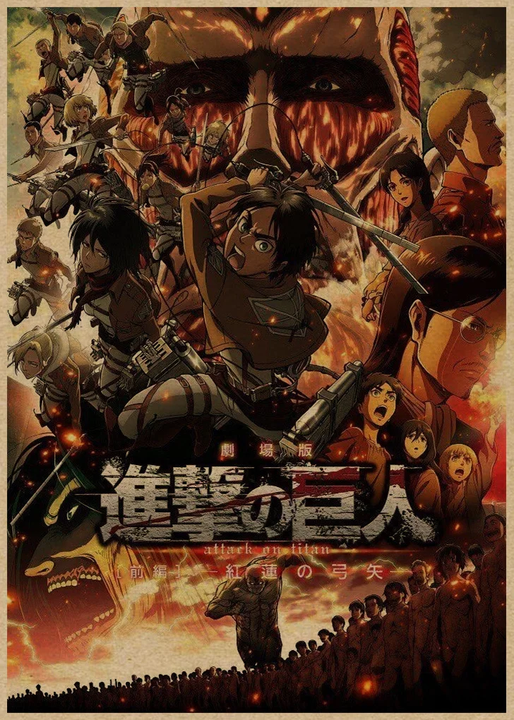 Ретро-постеры атака на Титанов японские аниме горячие, крафт-бумага...