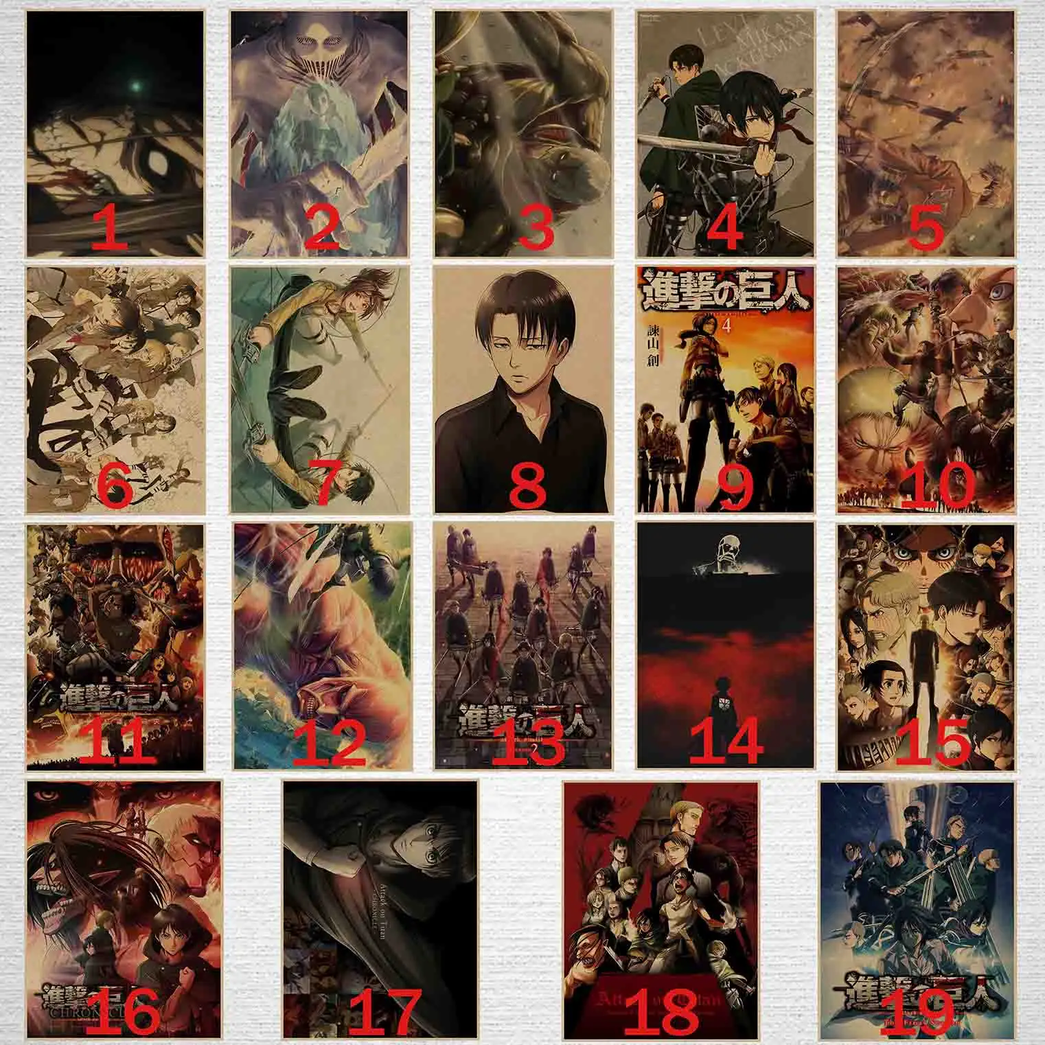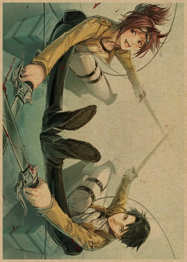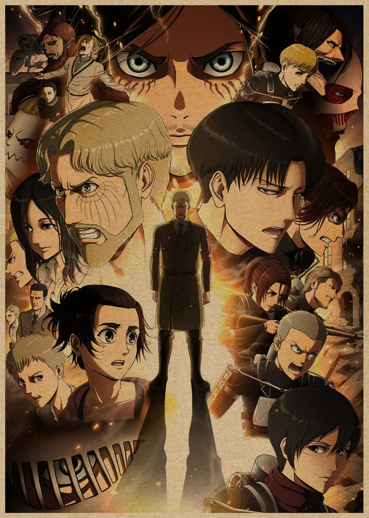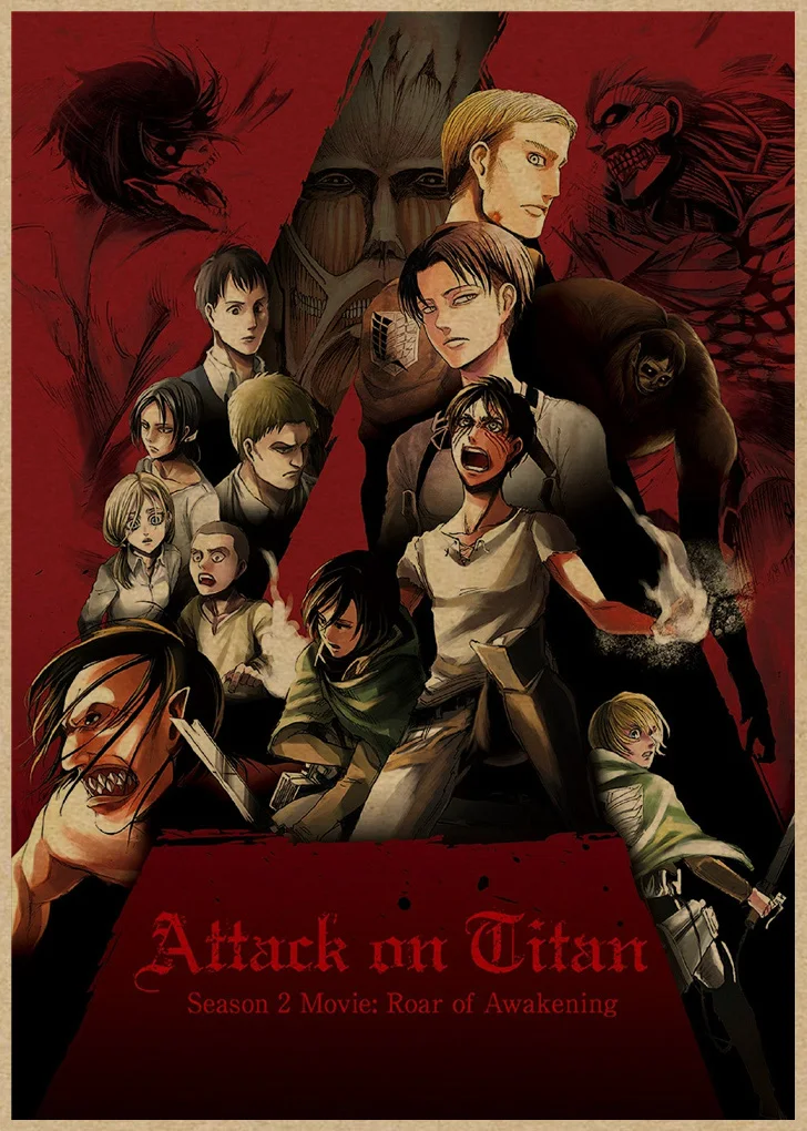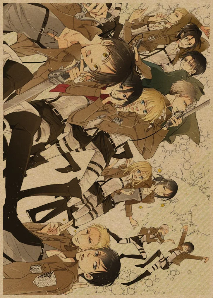Лидер продаж, винтажные постеры из японского аниме атака на Титанов, художественные настенные наклейки для домашней комнаты, купите 3 и получите 1