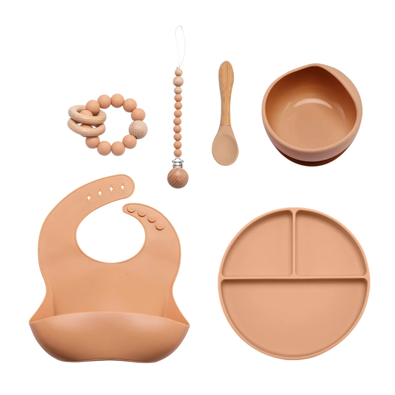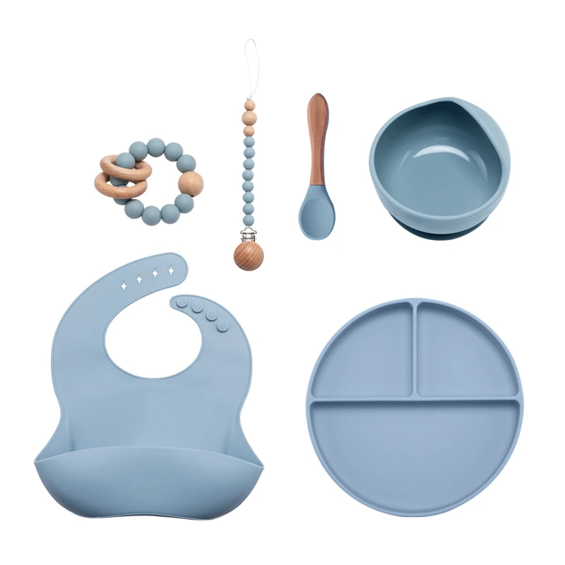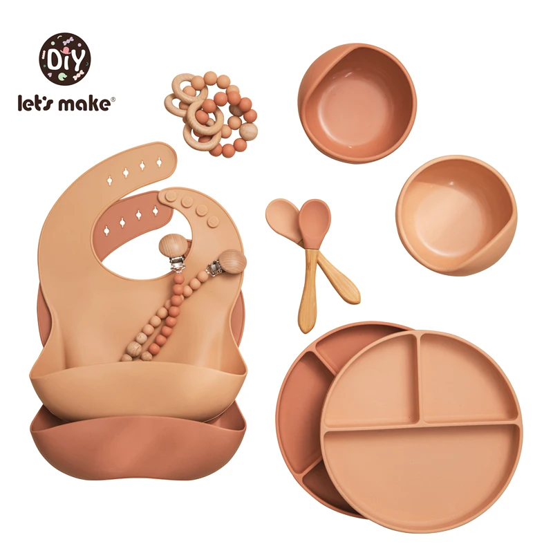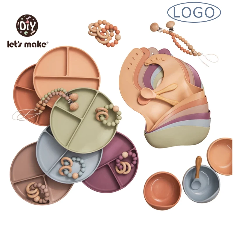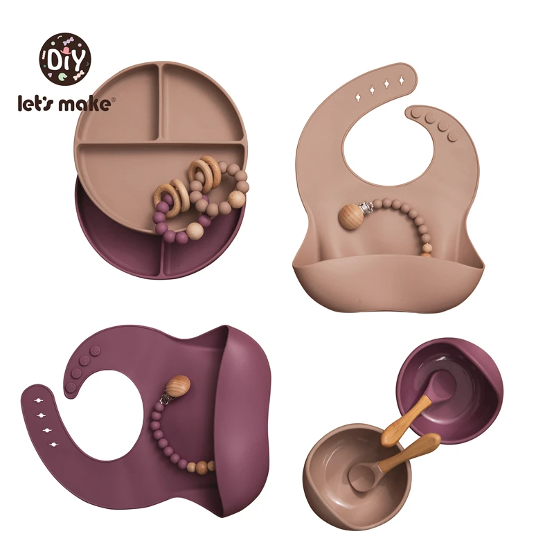 Набор для кормления let's make, детский силиконовый нагрудник, ложка, тарелка, чаша, погремушка без бисфенола А, слюнявчик для кормления новорожденных, аксессуары
