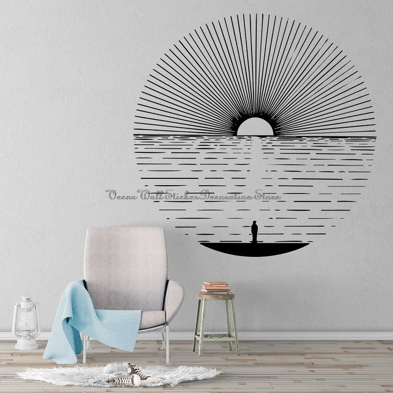 Виниловые художественные настенные наклейки с изображением морского побережья, подъема солнца, дома, гостиной, спальни, офиса, декоративные художественные настенные наклейки, наклейки JH27
