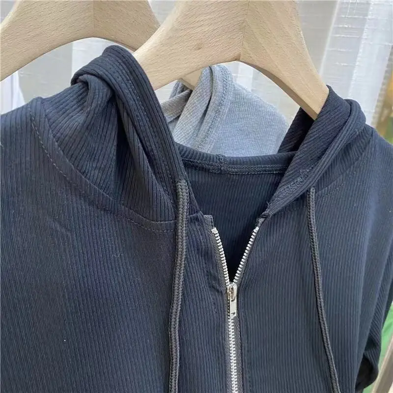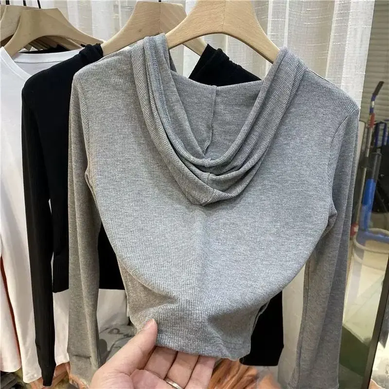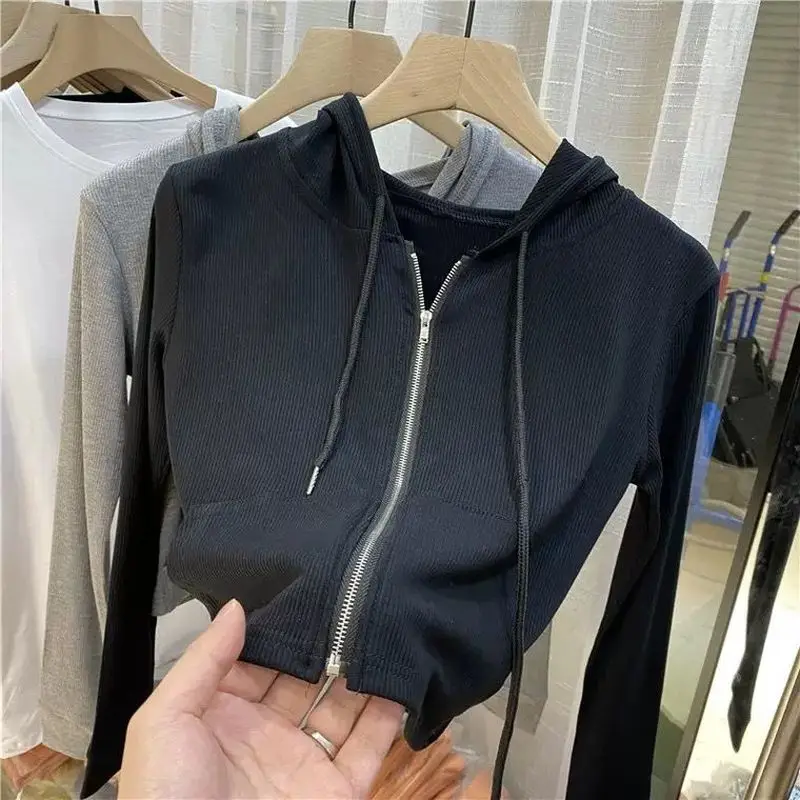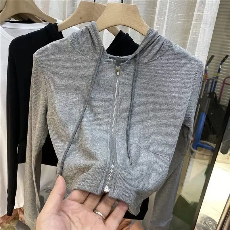 Новинка Весна 2021, Модный стильный мягкий кардиган на молнии с капюшоном, женская тонкая короткая куртка BM с высокой талией и длинными рукавами, маленькое пальто