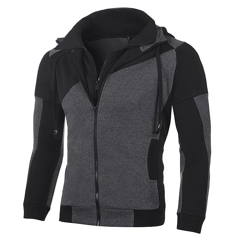 Мужская повседневная толстовка с капюшоном, на двойной молнии