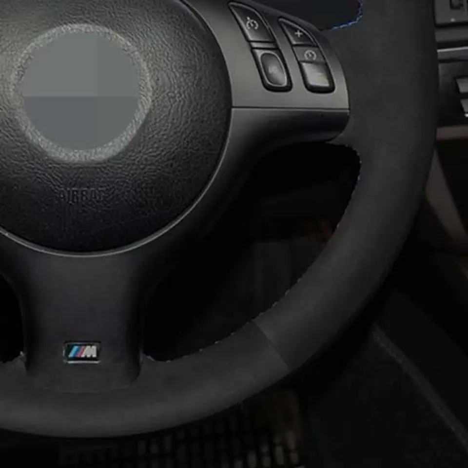 Сшитая вручную черная замша чехол рулевого колеса автомобиля для BM...