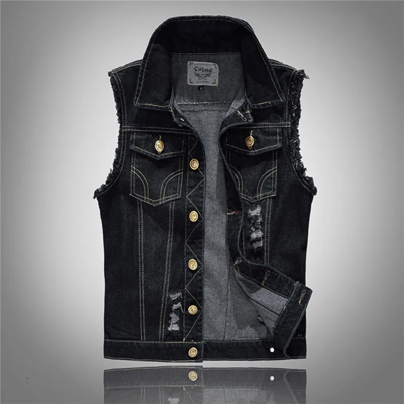 Жилетка мужская джинсовая, хлопковая моющаяся безрукавка, повседневный модный мотоциклетный жилет с дырками, лето