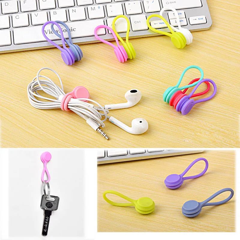 Комплект из 3 предметов симпатичный магнит многоцветный кабель скрепленная проволокой наушники устройство для сматывания шнура питания Силиконовый магнит, катушка шнура наушника аксессуары