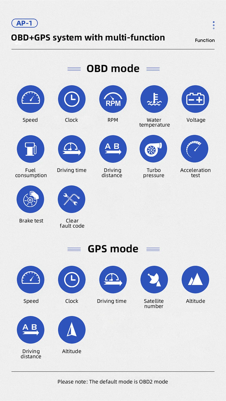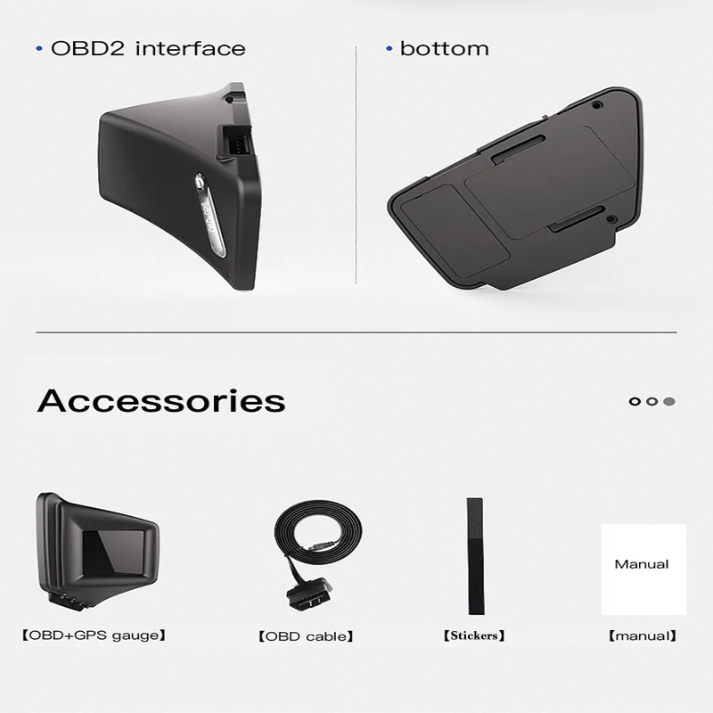 Название продукта: Автомобильный головной дисплей OBD GPS Материал: АБС Цвет: черный Система: OBD + GPS Размер экрана: 2-дюймовый ЖК Разрешение экрана: 240*240 Размер чистого металла: около 9,7*6,1*4,9 см/3,82*2,40*1,93 дюйма Вес Чистого металла: около 195 г Длина кабеля: 175 см Применение: все модели Особенности: 1. Двойная система OBD + GPS, подходит для всех автомобилей. 2. Два способа установки: Установка стойки А + установка приборной панели. Первый HUD на рынке может быть установлен на обшивку стойки. 3. Первый HUD на рынке с экраном может вращаться на 270 градусов. 4.8 видов интерфейсов дисплея, различные интерфейсы можно свободно переключать. 5. В первом HUD с небольшой таблицей кодов Максимальное разрешение достигает 240*240. 6. Частота обновления до 10 Гц без отставания csreen. 7. Первый HUD отображает все данные в двойном режиме OBD + GPS, нет необходимости переключать рабочую систему, если протокол OBD2.