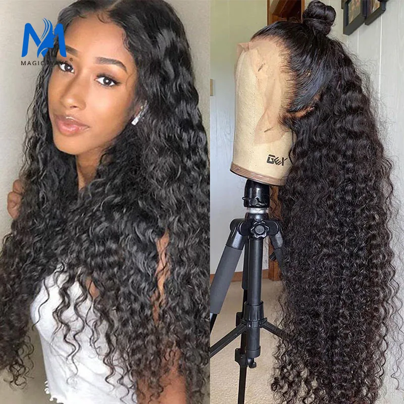 Волшебные волнистые парики на сетке 13x4, парики на сетке спереди, волнистые вьющиеся парики на сетке, предварительно выщипанные 200 плотные вьющиеся парики из человеческих волос
