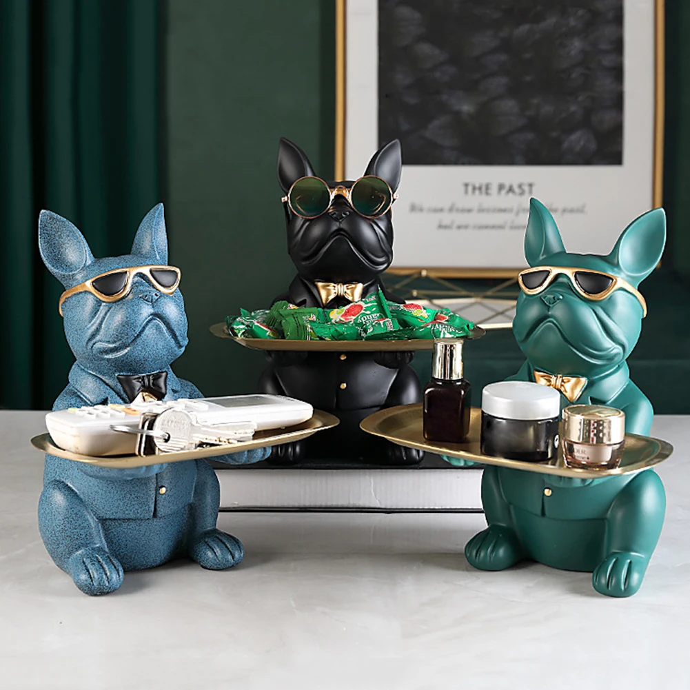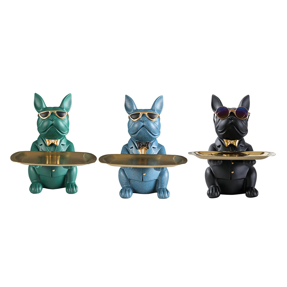 Скульптура для классной собаки из смолы, декоративная фигурка бульдога, поднос для хранения монет, банка, вход, ключ, снэк-держатель, современное искусство, статуя, украшение для дома, рабочего стола
