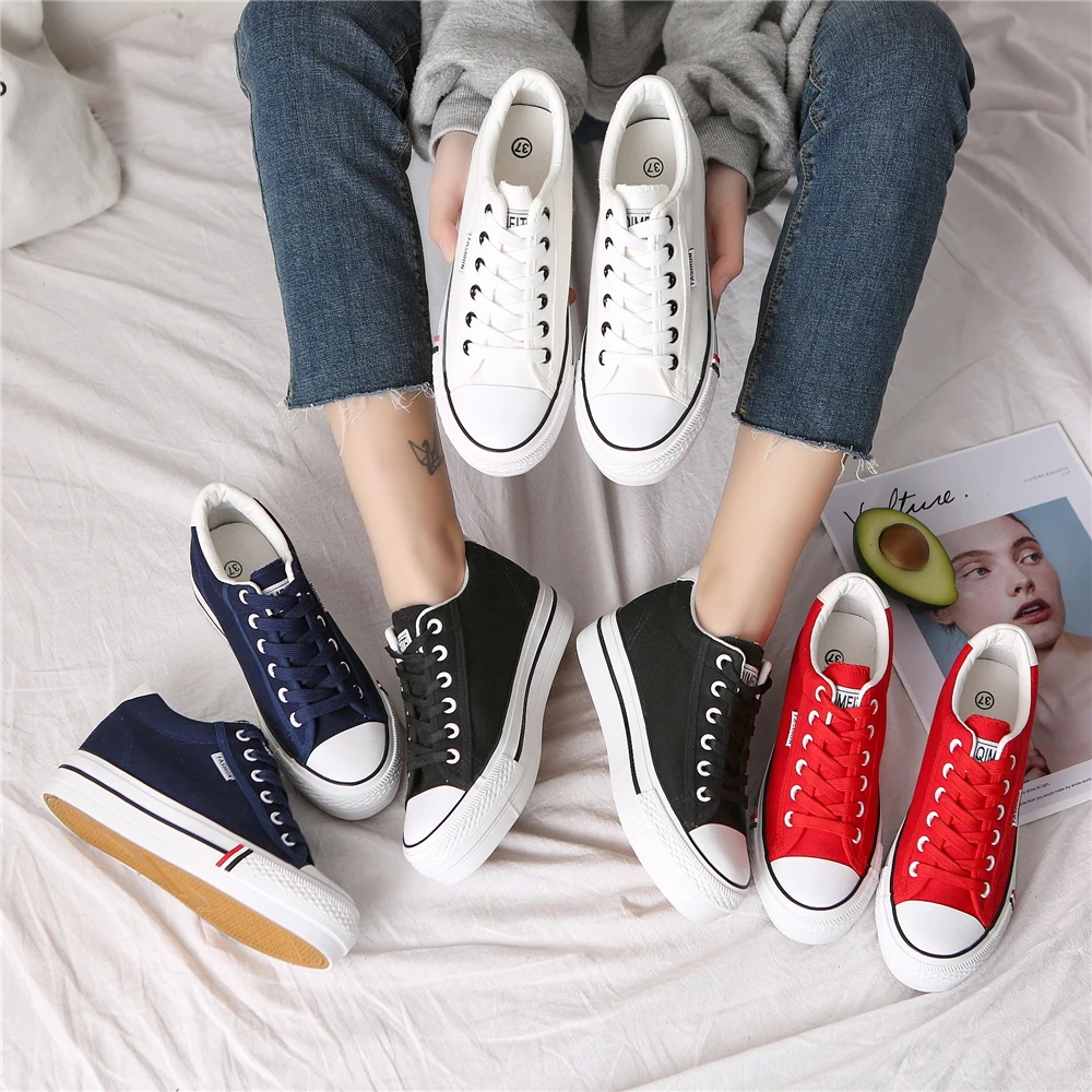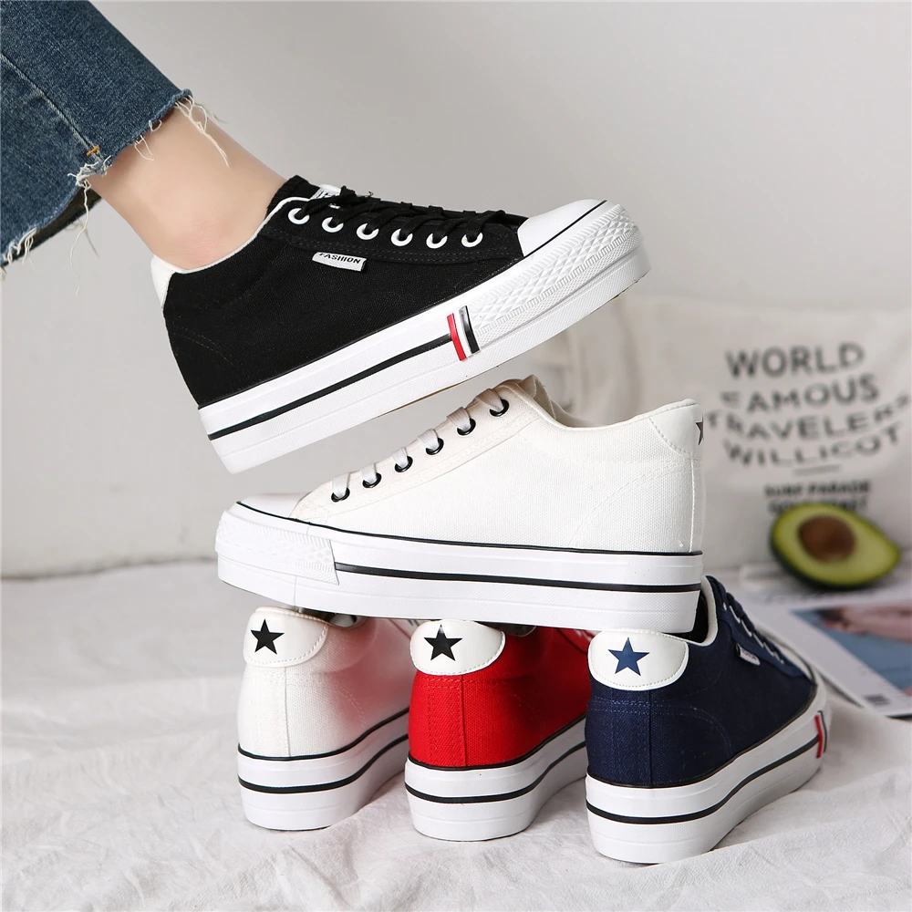 Женские парусиновые кроссовки на танкетке, белые, черные, на вулканизированной подошве, для весны и осени