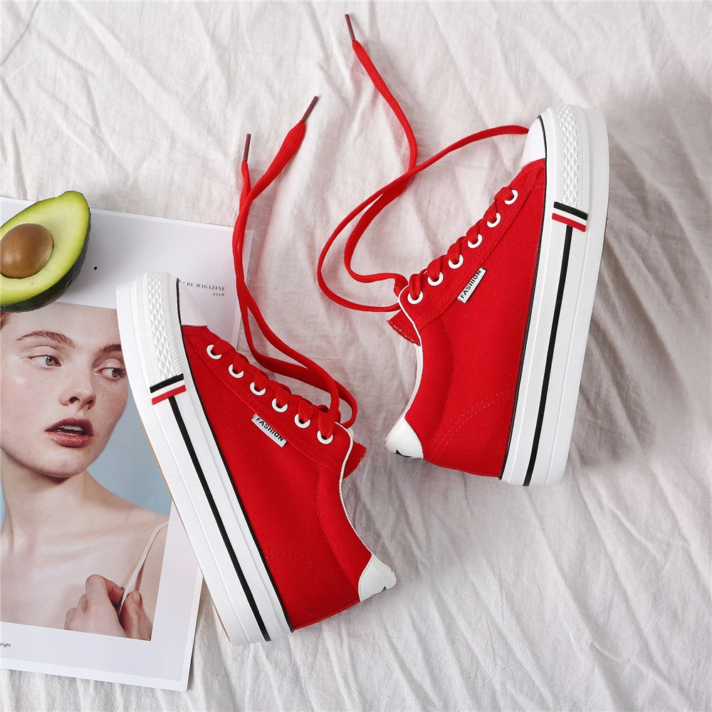 Женские кроссовки из парусины, на платформе, со скрытым каблуком, д...