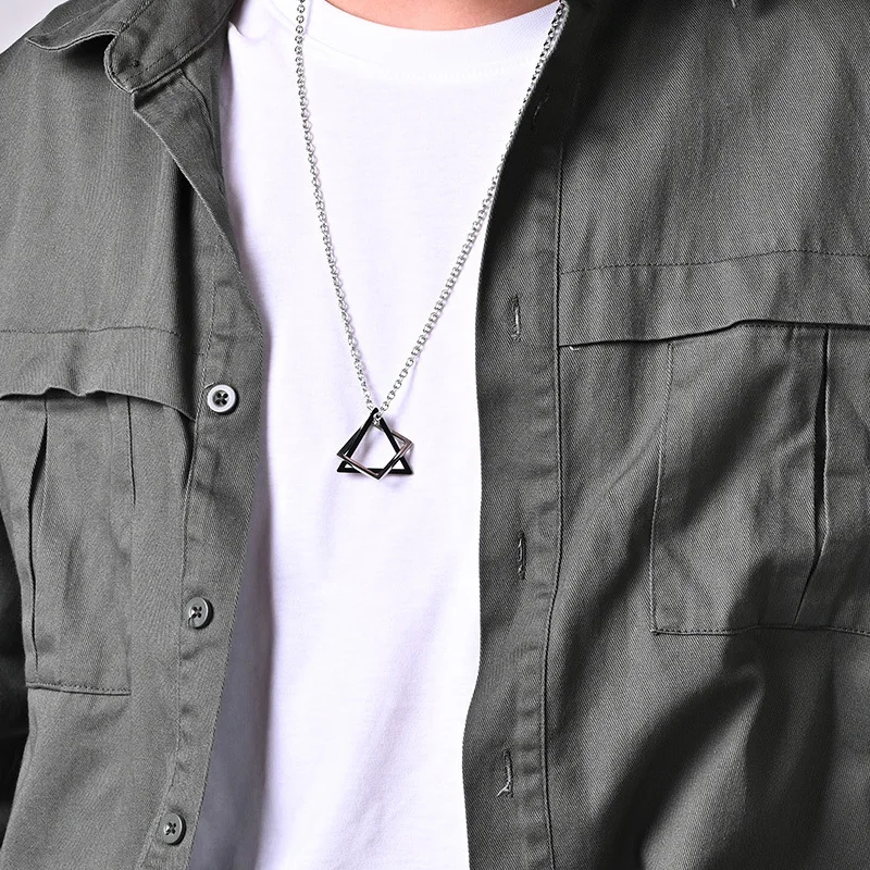 Ожерелье из нержавеющей стали для мужчин и женщин, кулоны геометрического дизайна с квадратными треугольными элементами, стильное ожерелье в стиле хип-хоп для пар, бижутерия
