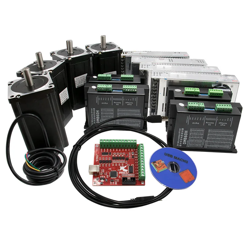 4x86HS156 Nema34 шаговый двигатель (12нм 156 мм длина)4 x DM860H драйвер4x400W60V6.67A источник питания1x4 AXIS MACH3 USB карта контроллера
