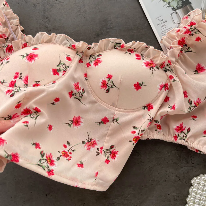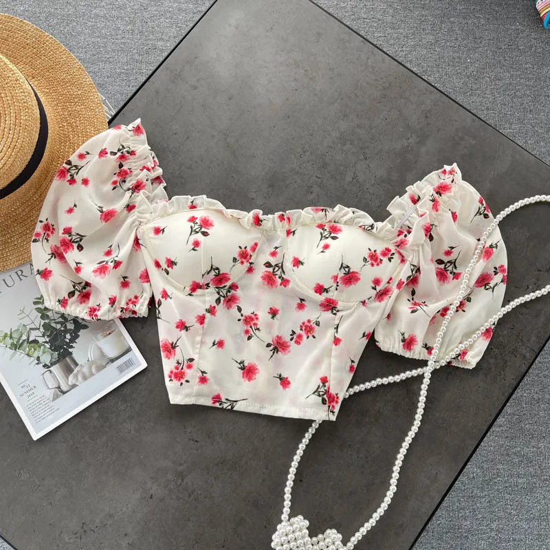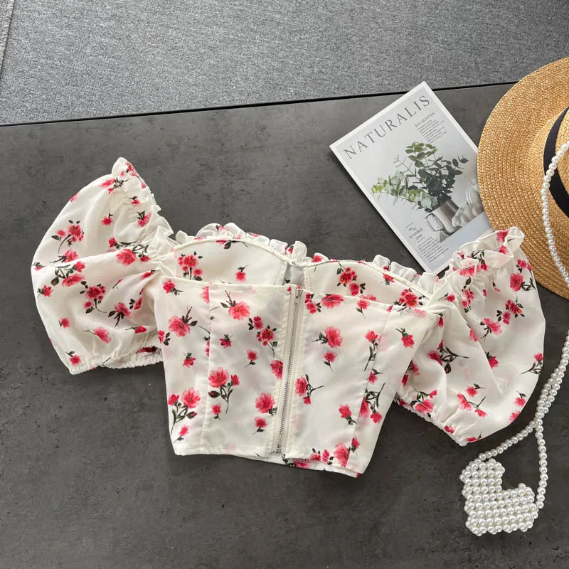 Женская блузка с квадратным вырезом, свободный кроп-топ в Корейском стиле ретро с пышными рукавами, повседневная женская блузка, LH514, лето 2022