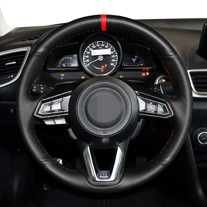 Ручной работы из натуральной кожи, черного цвета крышка рулевого колеса для Toyota Yaris Mazda 3 Axela Mazda 6 Atenza CX-3 CX-5 CX-9 2017-2019
