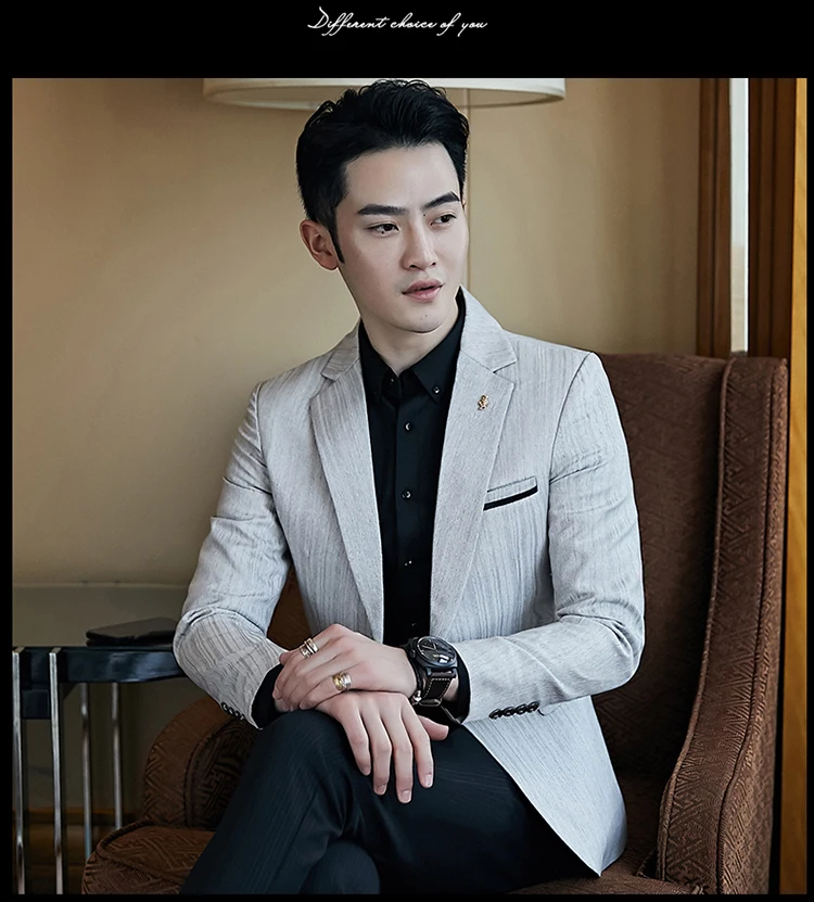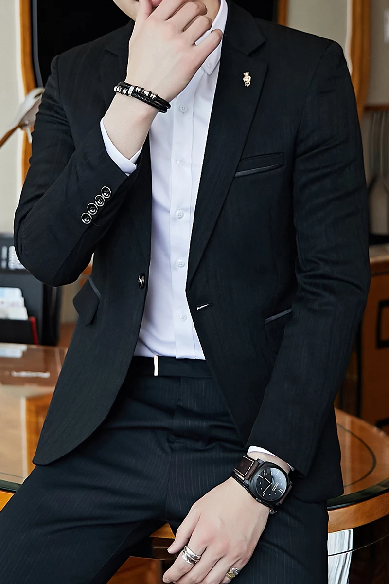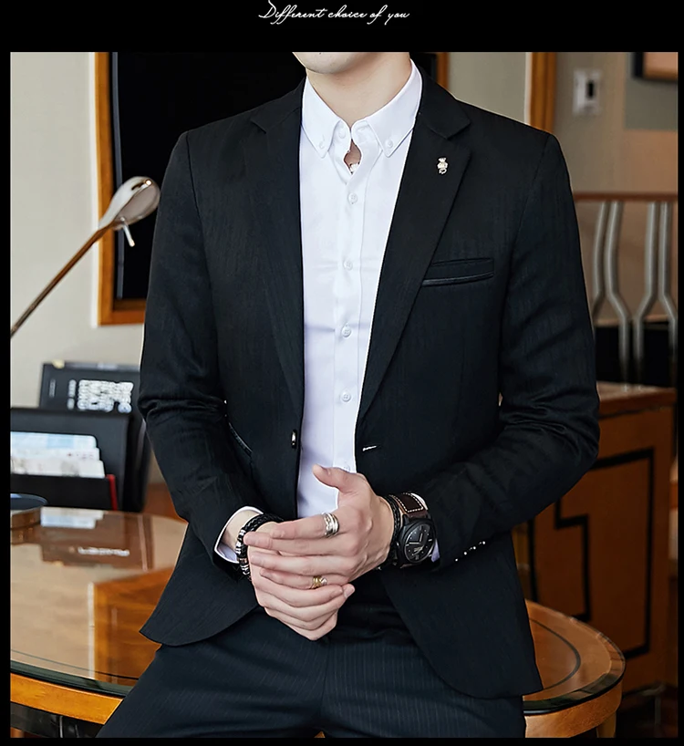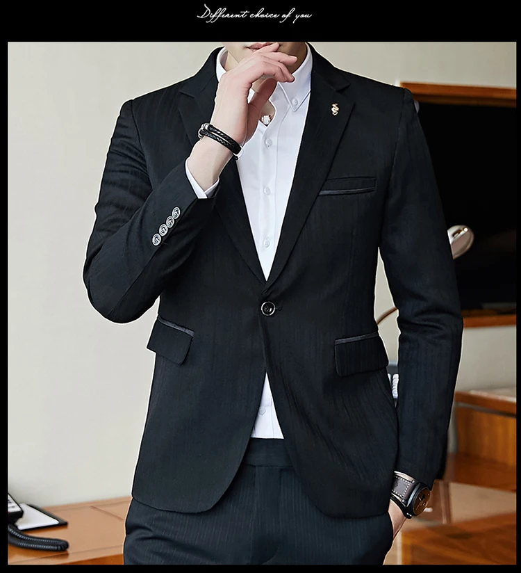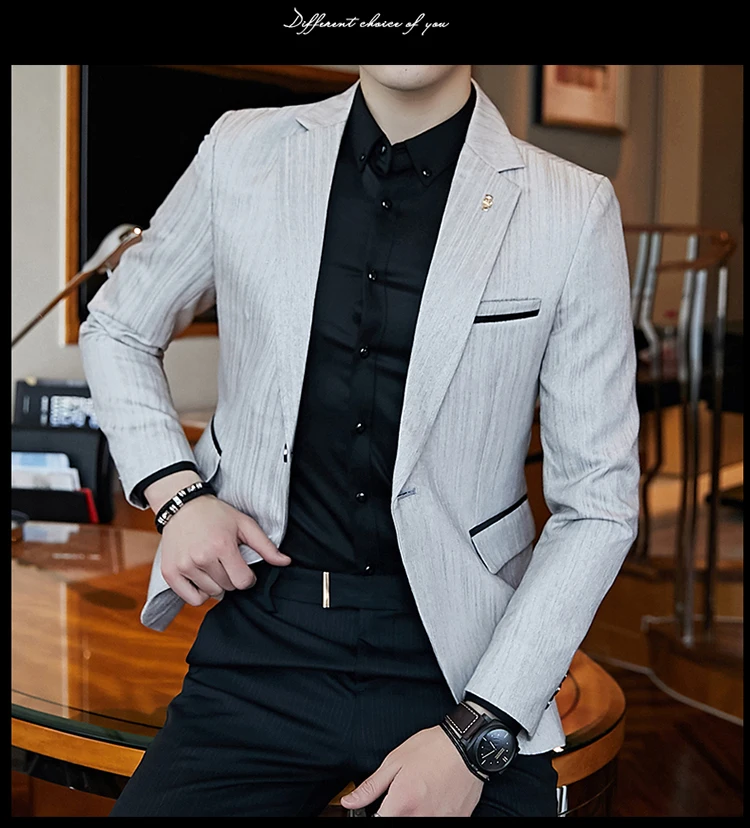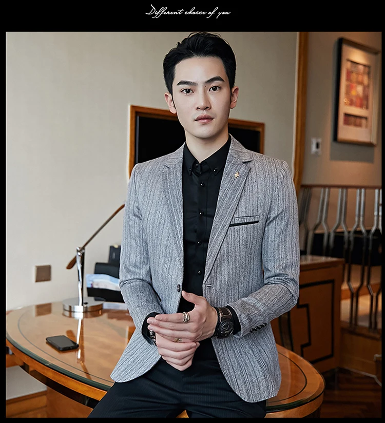 Полосатый пиджак мужской Slim Fit Блейзер Slim Masculino Бизнес Пов...