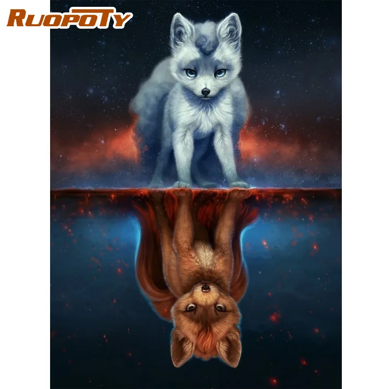RUOPOTY акриловый набор для рисования по номерам отражение лиса краски по номерам Животные настенные картины ручная роспись для домашнего декора Gi
