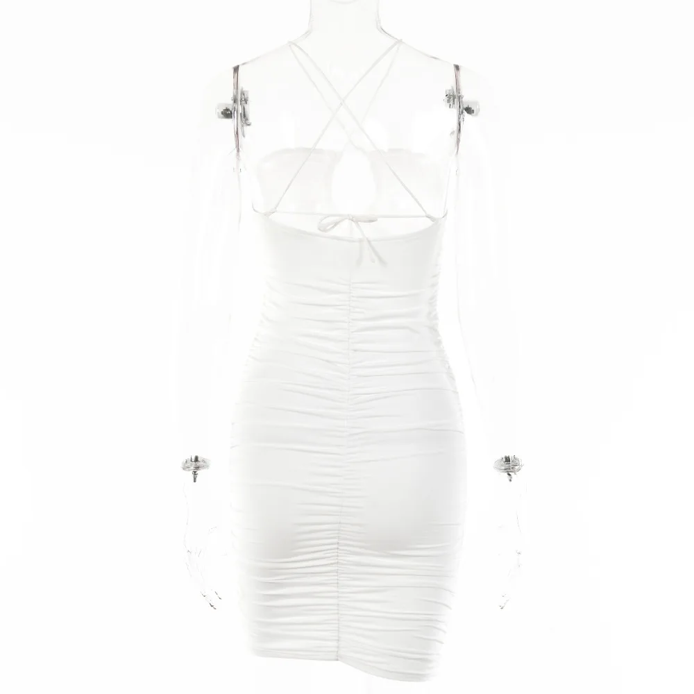 Летняя женская плиссированная полая облегающее мини платье с лямкой...
