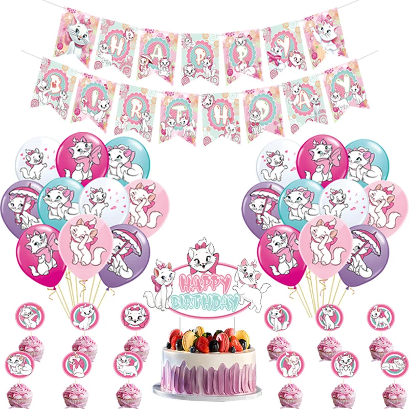 Воздушные шары в виде кота-Мари, розовые шары с флагом принцессы, б...