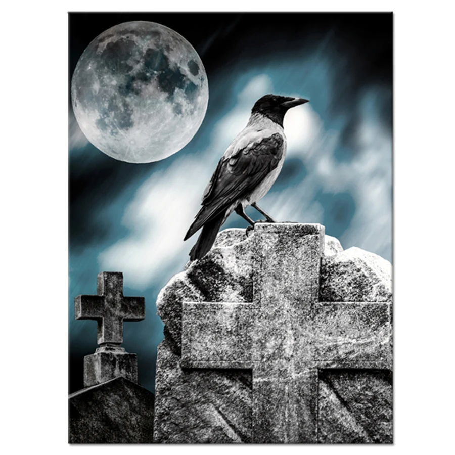Готическое искусство Алмазная вышивка ворона лунный свет алмазная живопись полная квадратная Круглая Мозаика Алмазная вышивка крестиком diy 5d домашний декор