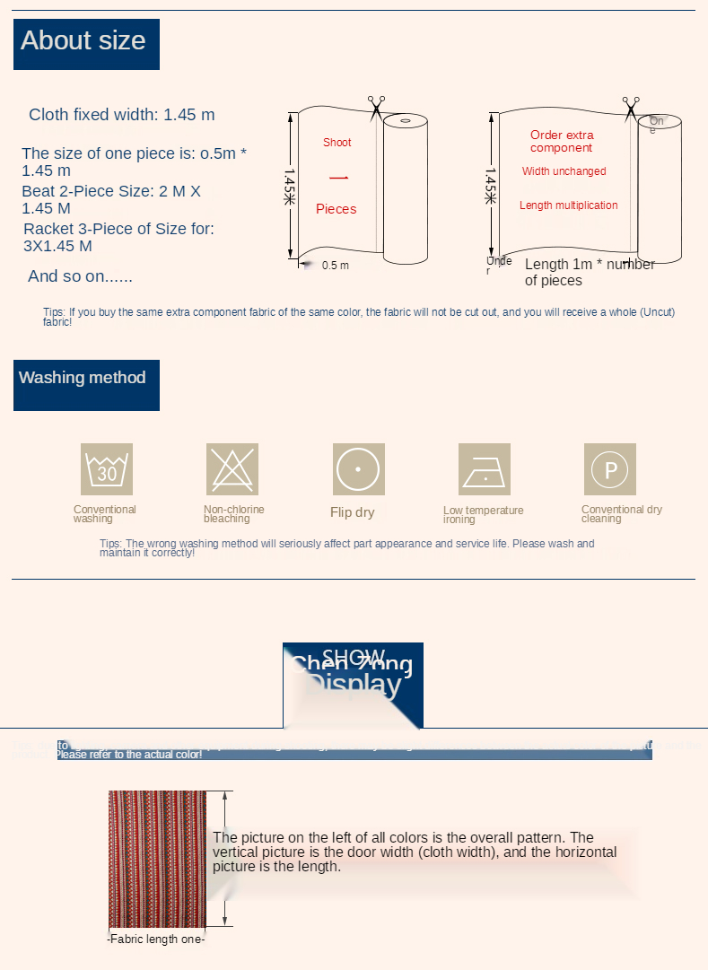 Длина ткани: 1 метр Ширина ткани: фиксированный 1,45 метрЗаказ "1" = цельная часть: 1 метр * 1,45 метрЗаказ "2" = весь кусок: 2 метра * 1,45 метра...Заказ "50" = весь кусок: 50 м * 1,45 мИ так далееНесколько количеств будут вырезаны в одном экземпляре!