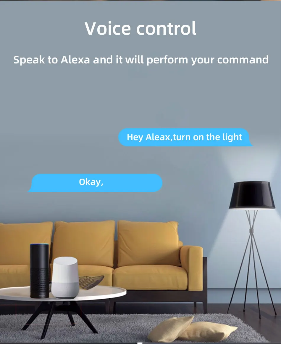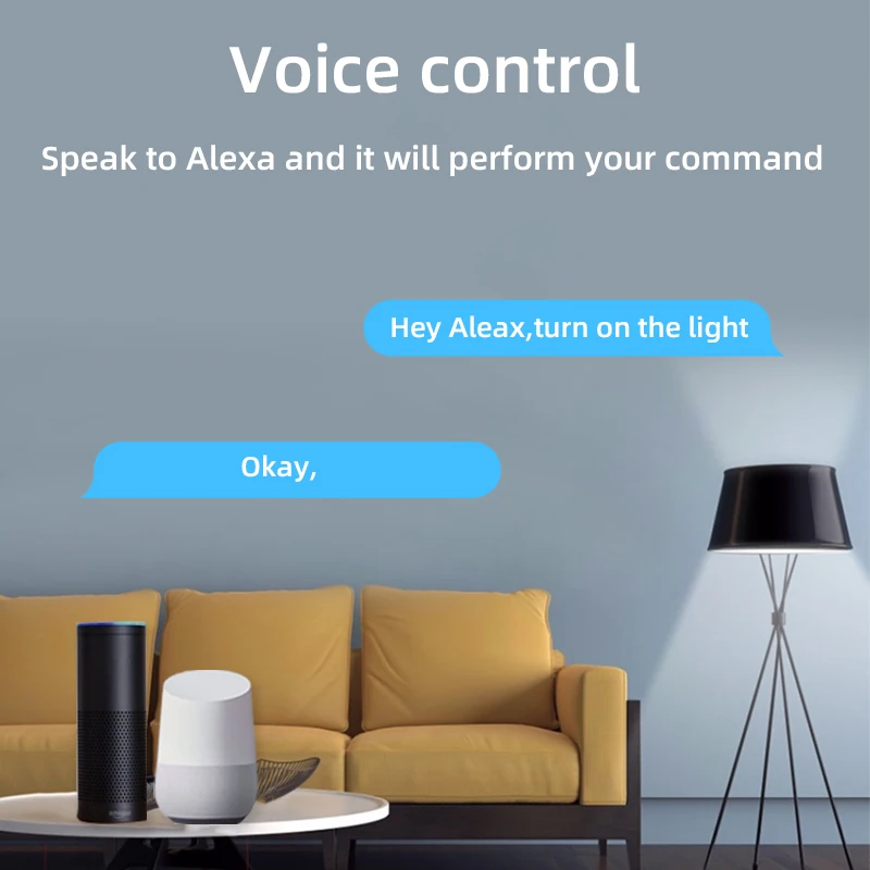 【APP пульт дистанционного управленияРаботает с приложением Tuya Smart life, поэтому вы можете управлять переключателем через приложение【Голосовое управлениеРаботает с Alexa, Goolge Assistant, вы можете голосовые команды alexa/google для включения/выключения переключателя.【Управление для мобильного телефонаКогда вы выходите на outsiede или дома можно дистанционный пульт лампы в мобильный телефон с помощью 2,4 ГГц WI-FI или 2G/3G/4G сети мобильной связи в любое время и в любом месте.(Примечание: устройство нужно онлайн с вашим маршрутизатором, и переключатель имеет близкое расстояние с вашим маршрутизатором)【Групповое управлениеОдин телефон может управлять многими устройствами, одно устройство может управляться многими телефонами.【Share Control】Вы можете поделиться переключателем с семьей, а затем они также могут управлять переключателем.【Timer】Вы можете установить расписание времени для включения/выключения ламп.