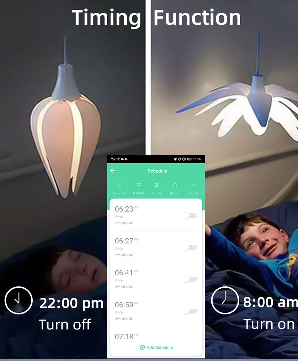 Дистанционное включение/выключение ламп, ламп и других бытовых приборовУстановите расписание времени для включения/выключения ламп, ламп и других бытовых приборов