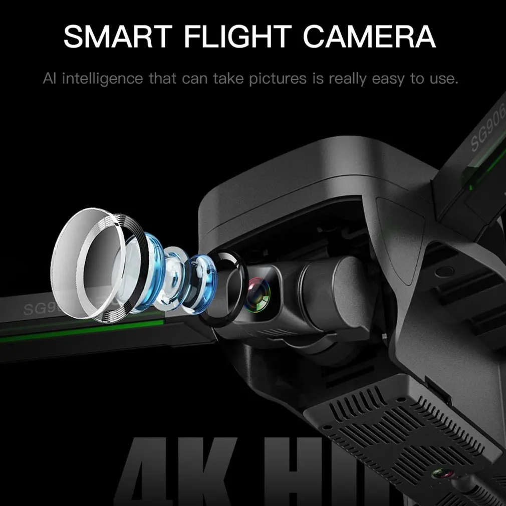 1. Исследуйте новые места и улучшайте свои навыки видеографии с помощью дрона камеры SG906 Pro 4K высокой четкости. Он может лететь в течение 26 минут непрерывно и снимать удивительные видео высокой четкости при 25fps.