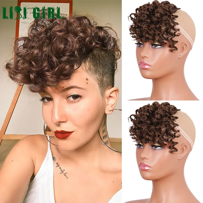 Искусственная кудрявая бахрома XQ, искусственные шиньоны из натурал...