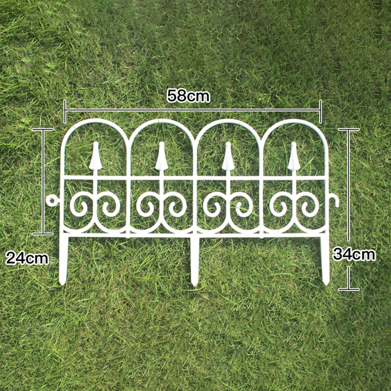 1. Это комбинированный пластиковый забор с использованием технологии железного типа, украшенный европейскими классическими узорами, красивый и прочный. В викторианском стиле садовые ограждения, 5 частей сплайсинга общая длина около 3 метров/9,84 футов, вы можете купить достаточное количество в соответствии с вашими потребностями. 2. Он изготовлен из стойкого к ультрафиолетовому излучению пластика PP, который может эффективно предотвратить эрозию ультрафиолетовых лучей, противостоять повреждению солнечного света и является прочным. 3. На одной стороне каждого забора имеется интерфейс для соединения с пряжкой с другой стороны, который может быть циклически соединен в соответствии с требуемой длиной. Под каждым забором есть три стержня 10 см, которые могут быть непосредственно вставлены в мягкую почву толщиной до 10 см, чтобы забор был глубоко закреплен в грунте. Держите его твердым и не свободным даже при ветре и дожде. 4. С определенной степенью гибкости, он может быть расположен в прямой линии или может быть сформирован в естественную изогнутую дугу в соответствии с кривизной внешнего края сада. Проект прост, установка и удаление очень удобны.