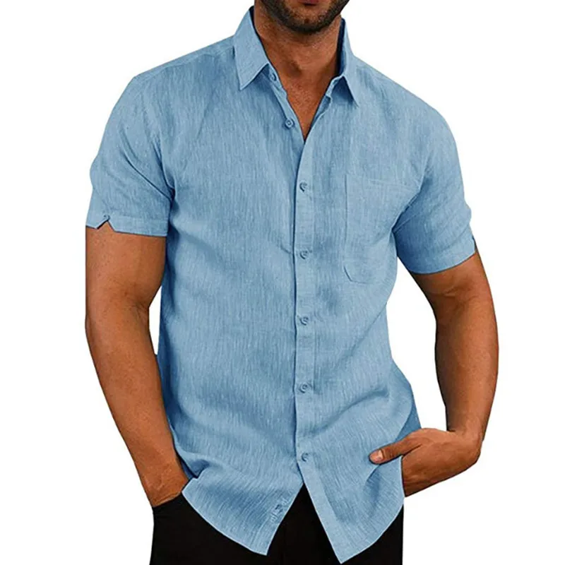 Рубашка Мужская льняная с коротким рукавом, свободная Повседневная ...