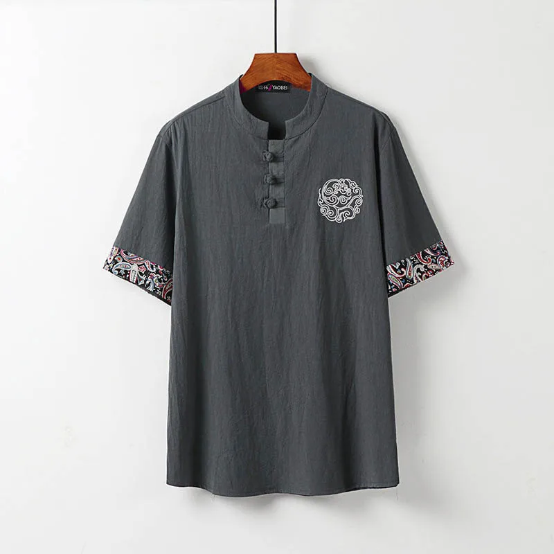 Мужская летняя футболка в китайском стиле с вышивкой, обхват груди ...