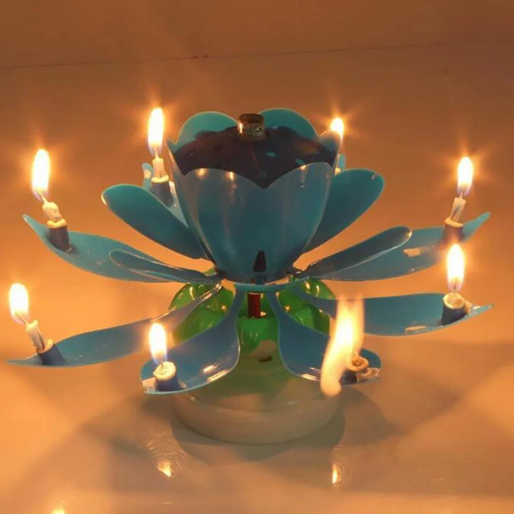 Музыкальная свеча с двойным цветком день рождения торт плоский вращающийся электронный