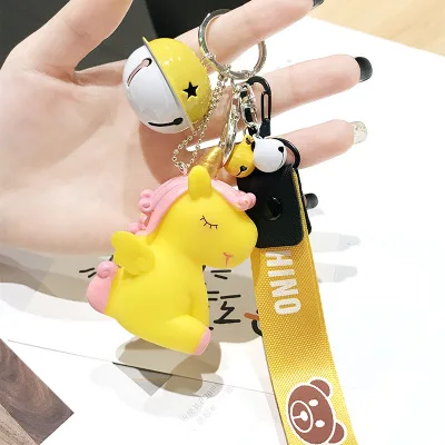 Брелок для ключей с милым мультяшным фокусным единорогом, аниме Радужный ПВХ брелок с помпоном в виде животного, Женская сумочка, очаровательный кулон, аксессуары, маленькие подарки