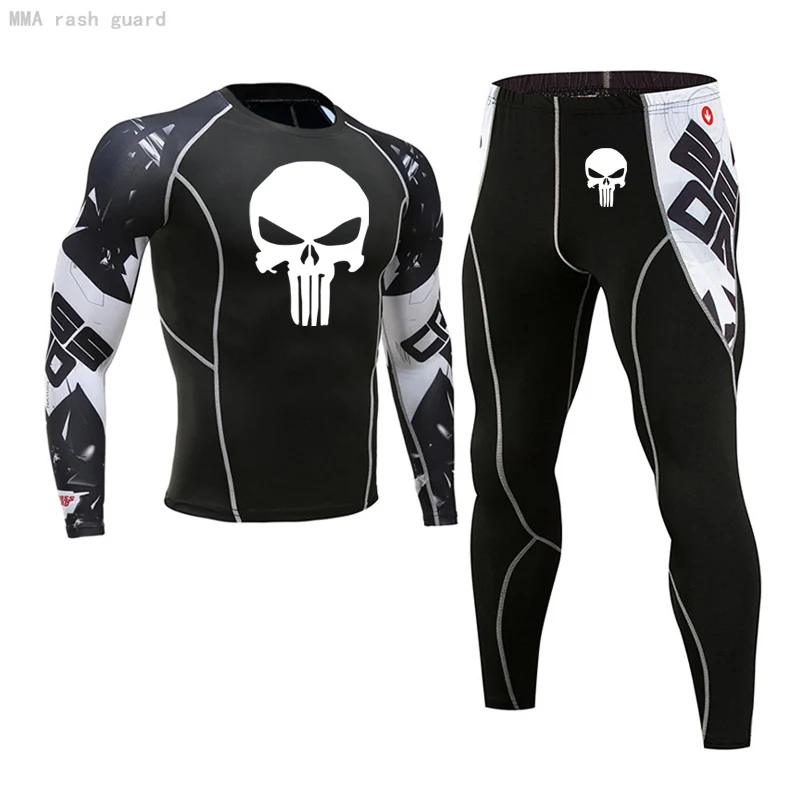 Компрессионное белье Рашгард для MMA Мужской тренировки кожу впитывает пот и Фитнес леггинсы длинная футболка теплая Для мужчин спортивный набор для бегунов