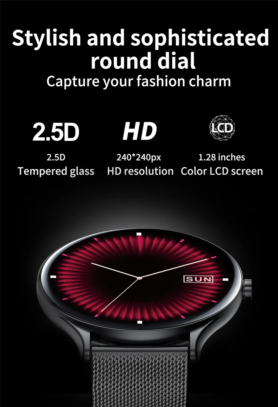 Экран: полноразмерный круглый экран 1,28 дюйма IPS высокой четкости